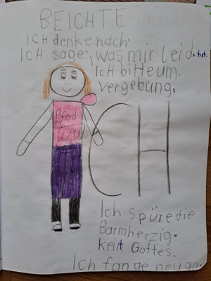 Hinein klebte ich einen kurzen Erklärungstext, was bei der Beichte geschieht, was das Kind sagt und tut, was der Priester sagt und tut.